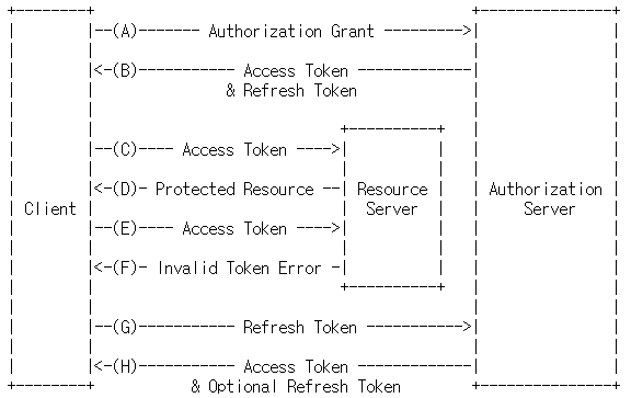 - 토큰이 만료될 때까지 (C)와 (D)를 반복한다. 이후에 만료된 access token으로 protected resource 요청