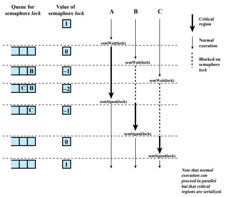 상호배제는 공유자원은 한번에 하나씩 사용하는데 집중한다. 비슷하지만 조건동기화는 Critical Section에 대기하는 프로세스(또는 쓰레드)를 Ordering 하는 전략이다.