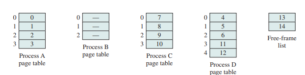 - 한 프로세스의 page 들이 불연속적으로 분산되어 적재될 수 있다. 따라서 프로세스마다 page 가 몇번 frame 에 위치하는 지에 관한 정보가 필요하다. -> os가 Page Table 로 별도로 관리한다. (프로세스마다 존재)