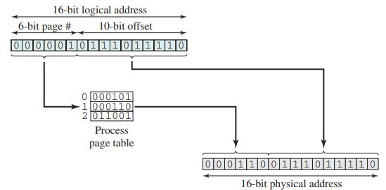 - page table 을 통해, 1번 페이지가 실제 메모리에서 몇번째 프레임인지 확인한다. (000110 번 프레임)