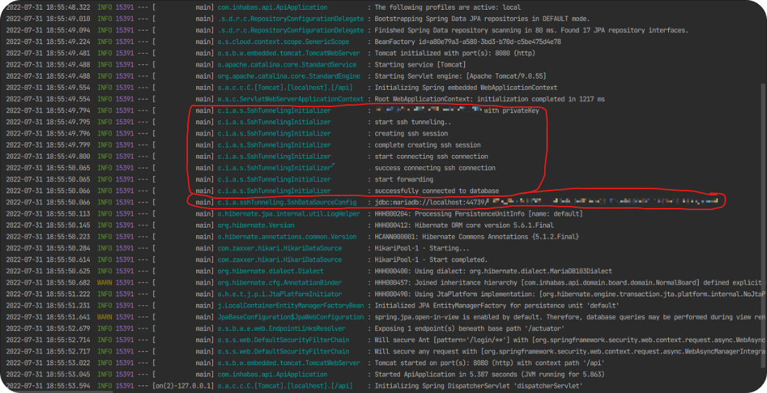 :웹 이벤트 리스너, 액션리스너 등을 이용해서 스프링부트가 시작되자 마자 ssh 연결을 시도하는 몇 블로그 글이 있었는데, JPA를 사용하지 않으면 가능한 방법이었다. 하지만 JPA를 사용하게 되면 스프링부트 어플리케이션이 시작되기 전에 db 연결을 먼저 확인하는 과정에서 언급한 방법들은 모두 실패했다.