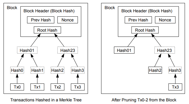 즉 블록에 포함된 모든 트랜젝션을 검증하지 않아도, 해시함수의 Avalanche Effect로 인해 블록 헤더에 적혀있는 32bytes 만 비교해도 블럭에 포함된 트랜잭션의 유효성을 판단할 수 있다.