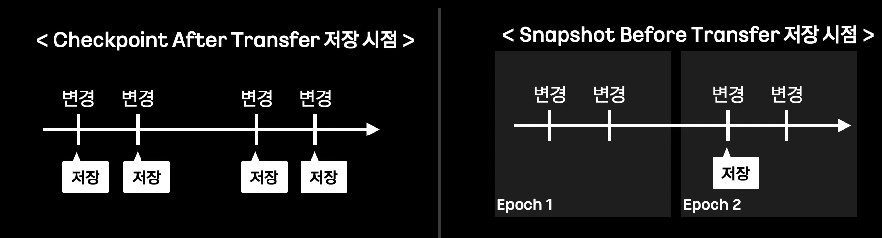 - checkpoint before transfer : 특정 주기 사이에 발생한 변경만 기록하는 방식.