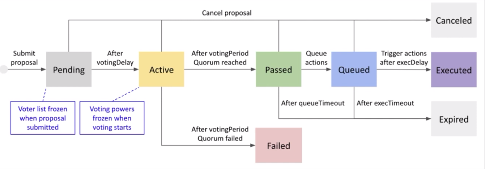 - 투표 마감이후 누군가가 추가적인 트랜잭션을 발생하여 확정. or 가결/부결을 확정하는 투표가 처리되는 순간 추가적으로 확정 로직 실행 -> 마지막 투표자가 수수료를 지불해야하므로 공정하지 않다.