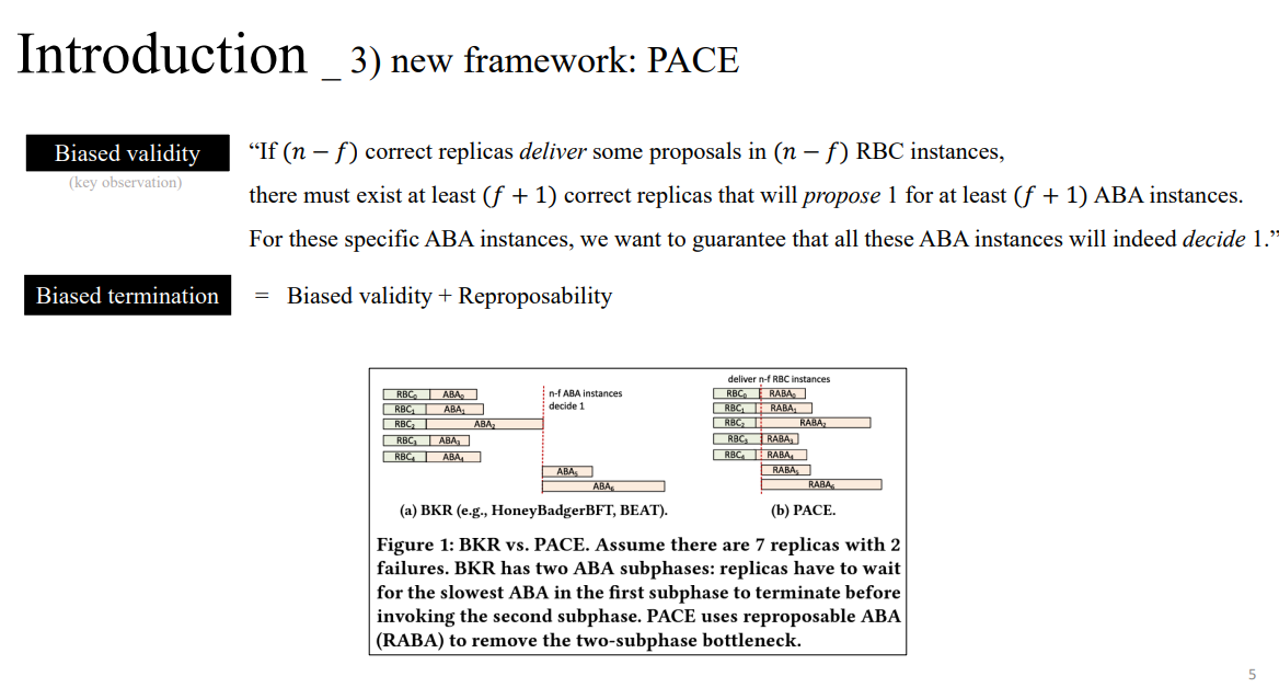 - remove two-subphase bottleneck of BKR paradigm, improving throughput, latency, and scalability over past BKR frameworks and Dumbo.