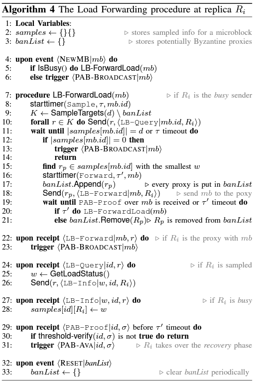 this paper proposes new primitives "provably available broadcast (PAB)" and "distributed load-balancing (DLB)" to solve such challenges respectively.