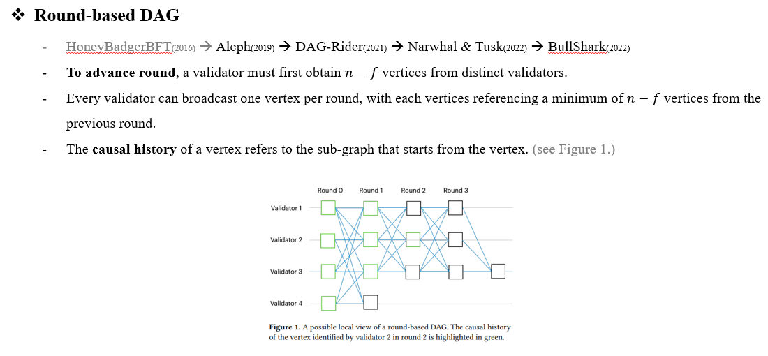 - HotStuff-like round structure (Threshold Clock structure) => using qualified certificates, and \(O(n)\) bits complexity.