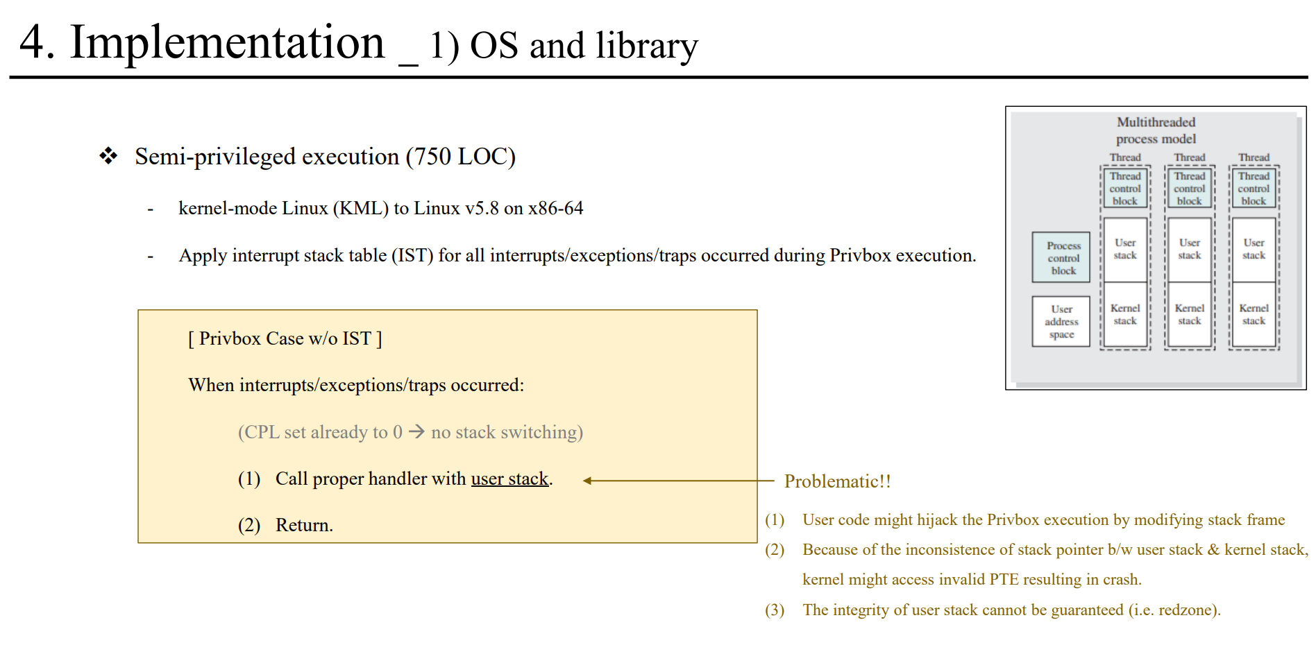 - How exactly does the Privbox manage custum page table? Usually a page table is allocated per one process.