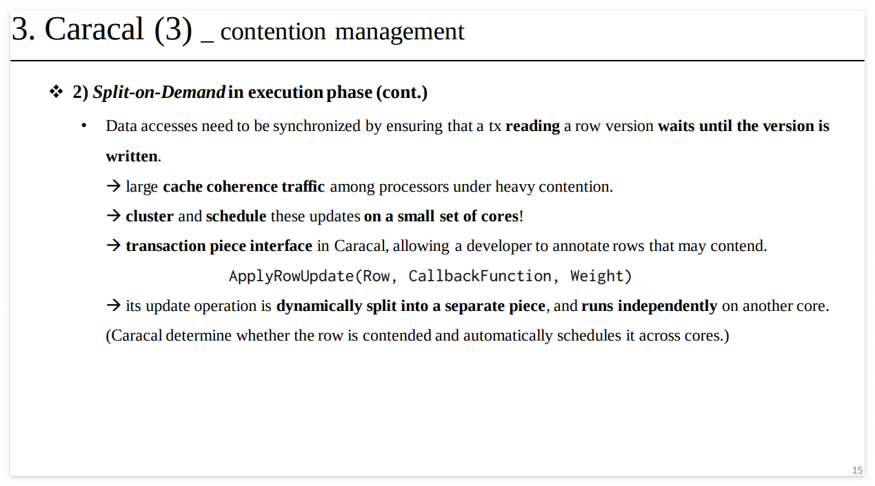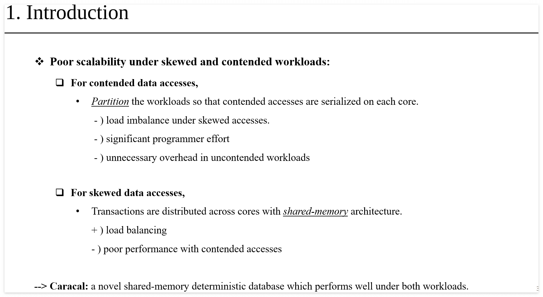 Caracal: Contention management with Deterministic Concurrency Control Authors: Dai Qin, Angela Demke Brown, and Ashvin Goel Journal/Conference: SIGOPS '21