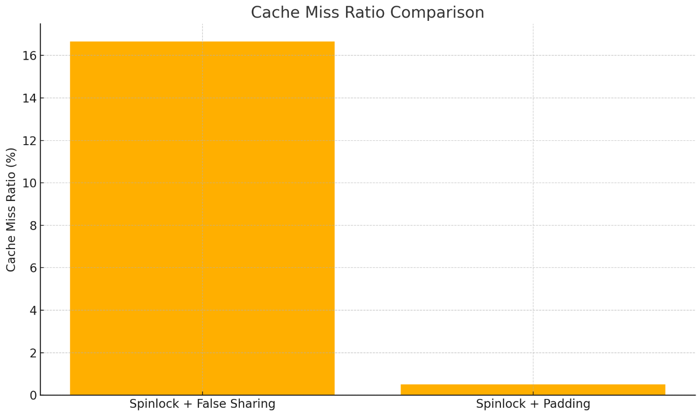 - Spinlock + false sharing 구조가 실제로 cache miss를 유발하는지 확인