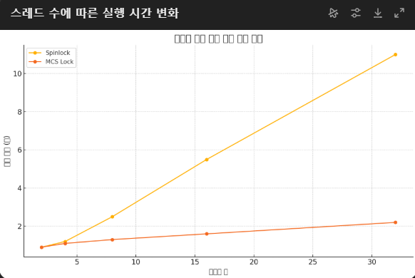 | 스레드 수 | Spinlock 성능 | MCS Lock 성능 |