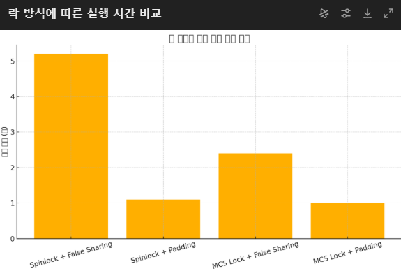 - Padding 추가 시: Spinlock도 성능이 수 배 향상됨