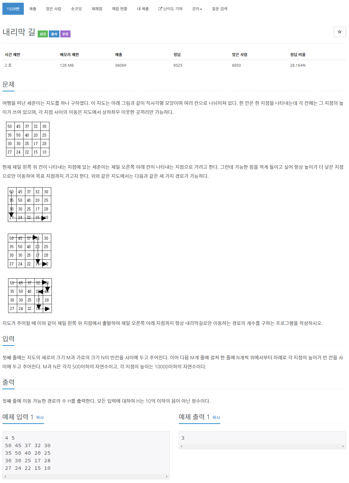 1520번: 내리막 길