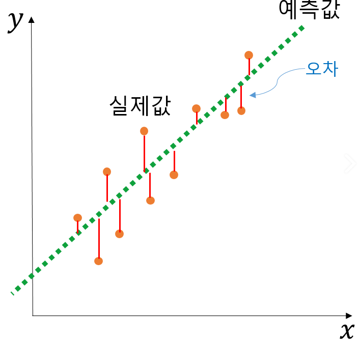 하나의 선을 그렸을 때 개별 데이터와의 오차가 발생하게 되는데,