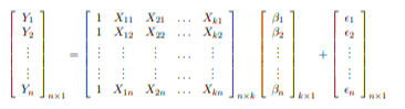 - \(\epsilon\) : y에 대한 예측치 \(\hat{y}=X\beta\) 와 \(y\) 의 차이