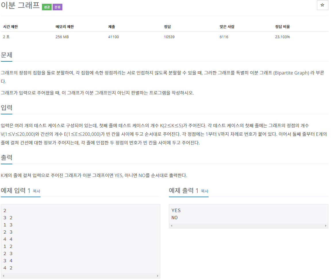 처음에 이분 그래프의 개념을 아예 몰라서, 이진트리를 의미하는 줄 알고 한참 고생했다....
