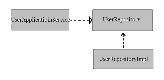 만약 UserRepository 가 정의되어 있지 않다면, 클래스 선언부에 컴파일 에러가 발생하며 UserRepositoryImpl 의 정의가 성립하지 않는다. 따라서 UserRepositoryImpl 는 UserRepository 에 의존한다.