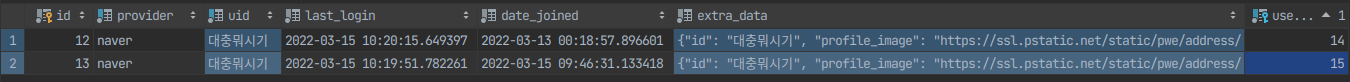 : django allauth 에서 관리하는 테이블에 사용자 uid 가 들어있는 테이블이 있다. 아래처럼 생겼다.