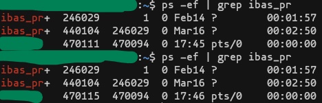 (위에 있는 프로세스가 uwsgi 본체이고, 그 밑에 있는 프로세스가 worker 인듯하다.)