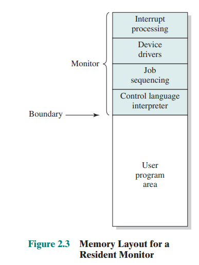- job sequencing 을 수행하기 위해서는 OS 가 항상 메모리에 상주해야하기 때문에, OS 와 사용자 프로그램의 메모리 공간을 분리해야한다(Memory Protection).