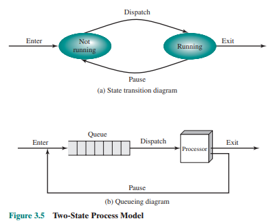 프로세스의 상태는 os 마다 상이하게 정의하지만, william stalling 교재에서는 대략적인 os의 state의 개념을 3단계에 걸쳐서 설명한다.