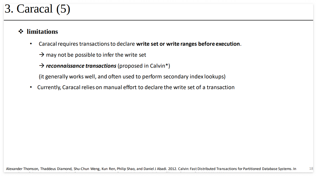 Caracal: Contention management with Deterministic Concurrency Control Authors: Dai Qin, Angela Demke Brown, and Ashvin Goel Journal/Conference: SIGOPS '21